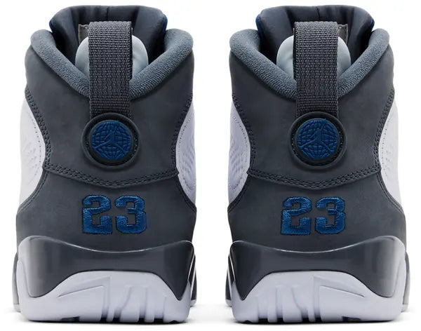 The 2026 edition of the Air Jordan 9 Retro 'Flint Grey' revives a non-OG colorway of the legacy silhouette. Representing the first ever reissue of the 2003 release, the shoe features a white leather upper with grey nubuck overlays. French Blue accents make their way to the Air Jordan tongue tag and the embroidered '23' that adorns the heel. Lightweight cushioning arrives via a full-length polyurethane midsole, painted grey and fitted with encapsulated Air-sole units in the forefoot and heel.